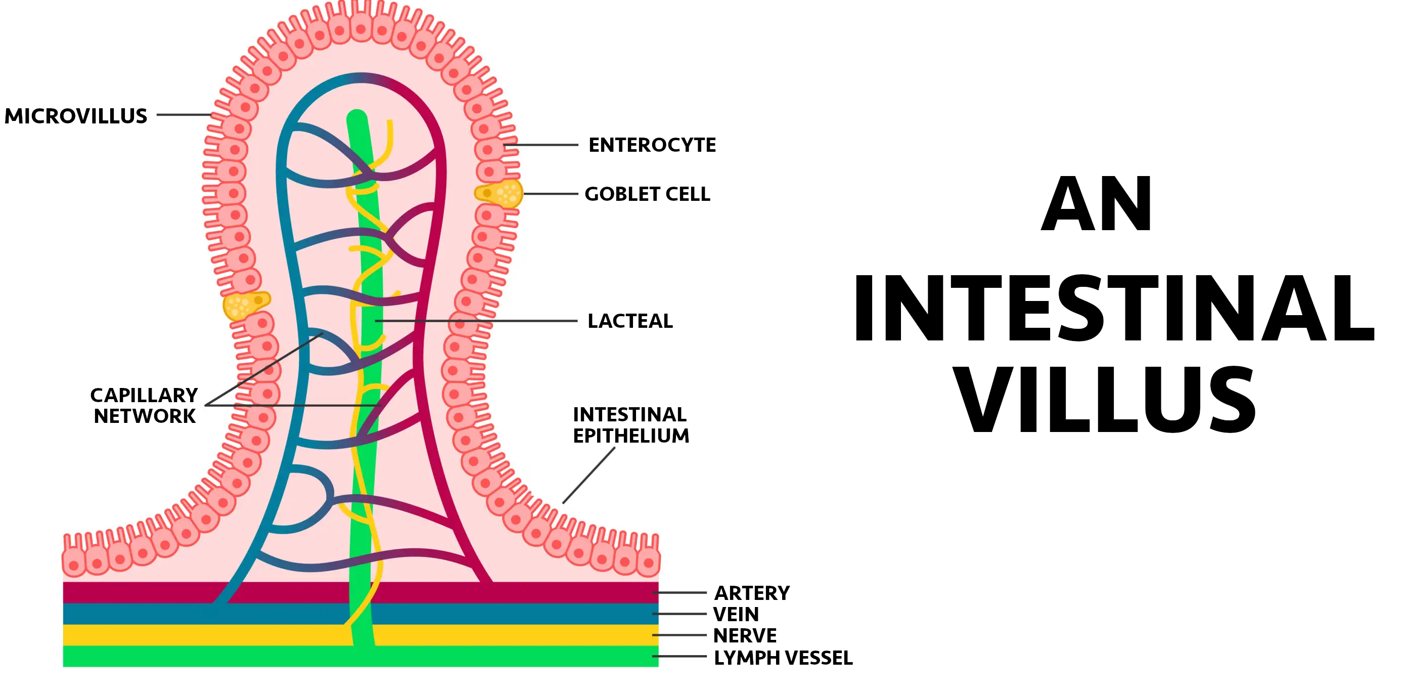 that line the intestinal wall - The villus is covered by the intestinal epithelium