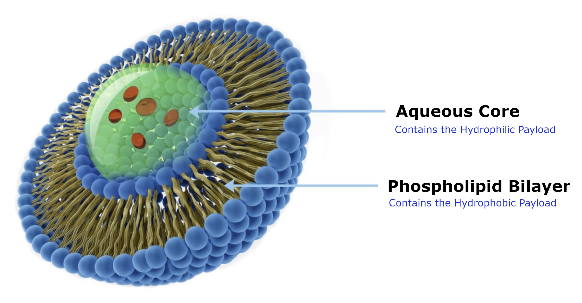 - The phospholipid bi-layer protects a liposome's payload
